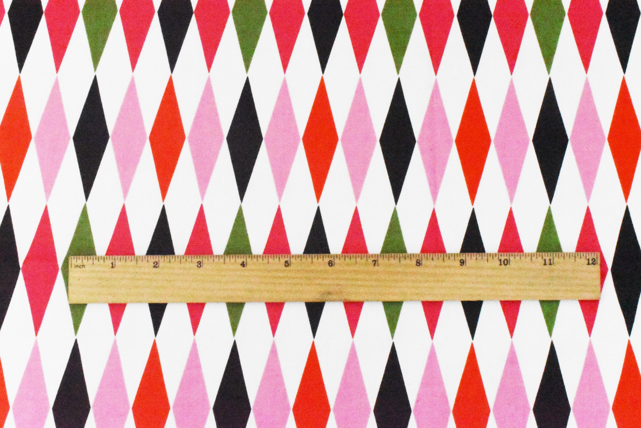 White-Red-Multi Diamond Printed Stretch Cotton Twill Sateen Woven Fabric