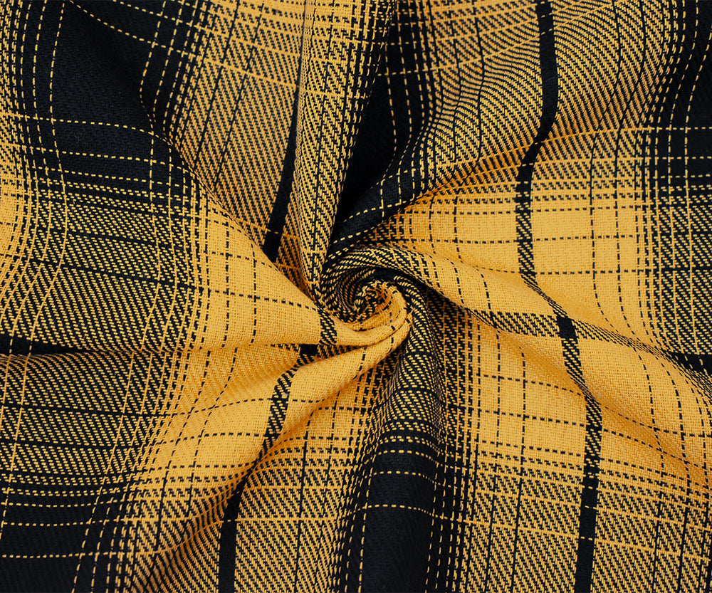 Yellow-Black Melton Poly Wool Single Sided Brushed Plaid Woven Jacketing