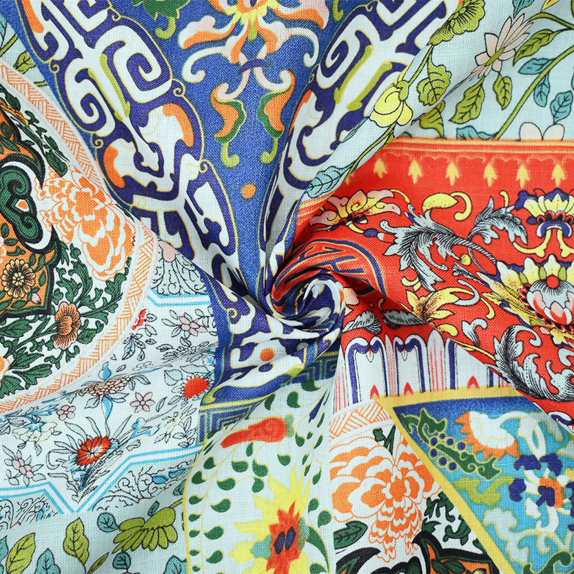 Woven fabric is created by interlacing two sets of yarns at right angles to each other. One set of yarns, called the warp, runs vertically, while the other, called the weft, runs horizontally, resulting in a durable, structured fabric with minimal stretch. Made from a variety of different materials, many from cotton, and many different and are used in clothing, quilts and crafts, and many more.
