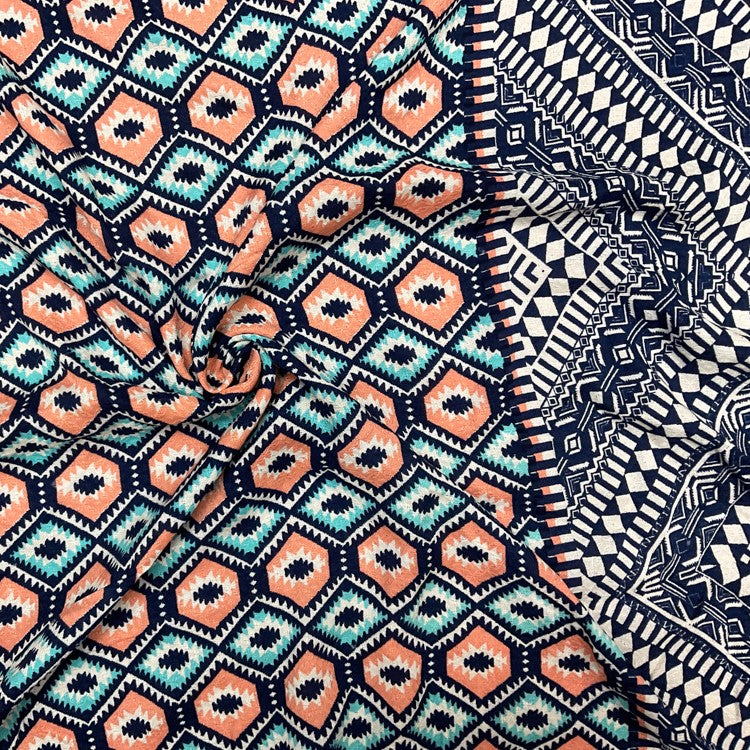 Woven fabric is created by interlacing two sets of yarns at right angles to each other. One set of yarns, called the warp, runs vertically, while the other, called the weft, runs horizontally, resulting in a durable, structured fabric with minimal stretch. Made from a variety of different materials, many from cotton, and many different and are used in clothing, quilts and crafts, and many more.