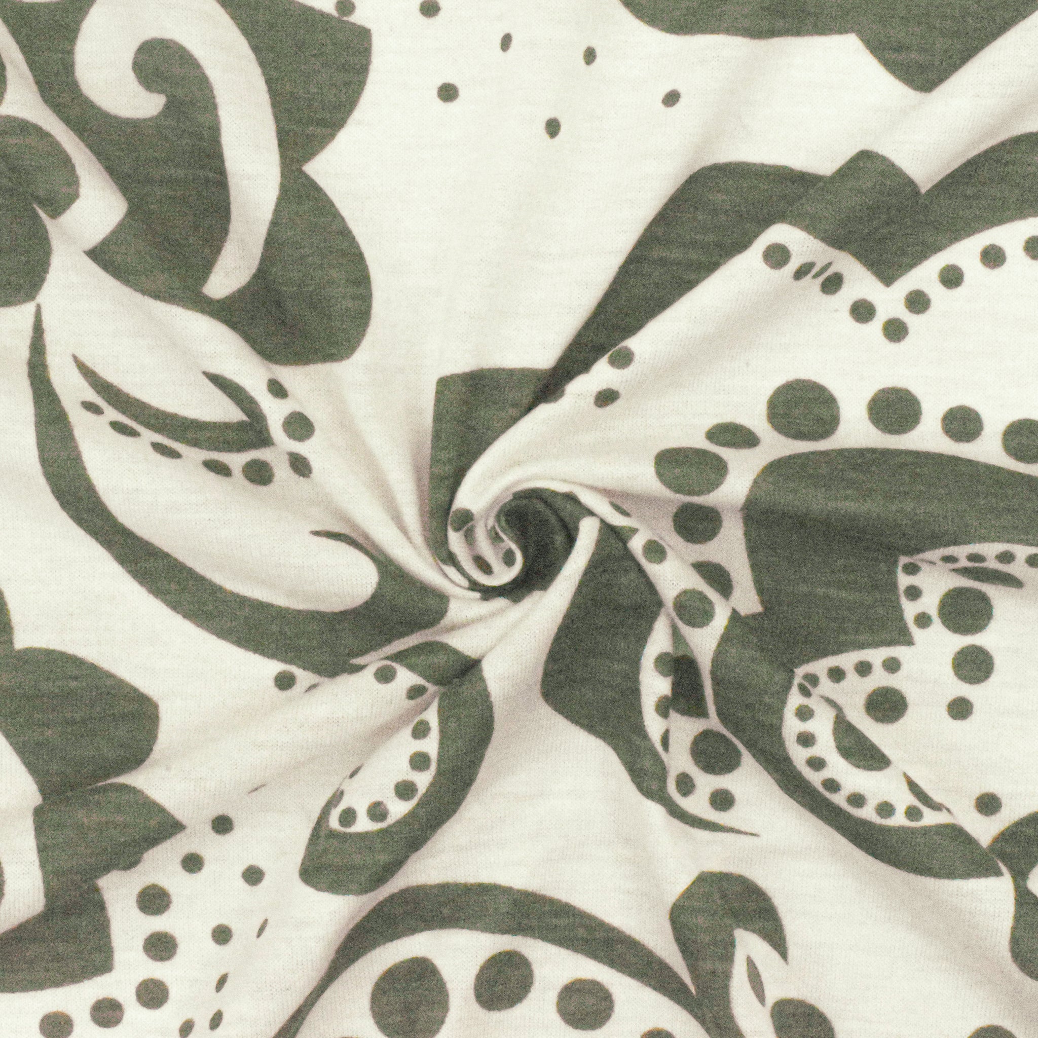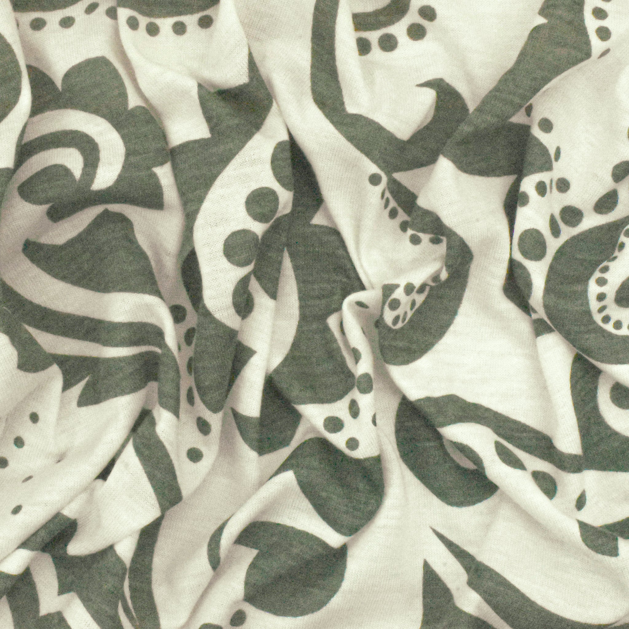 Gray-Ivory Abstract Dot Printed Slub Jersey Knit Fabric