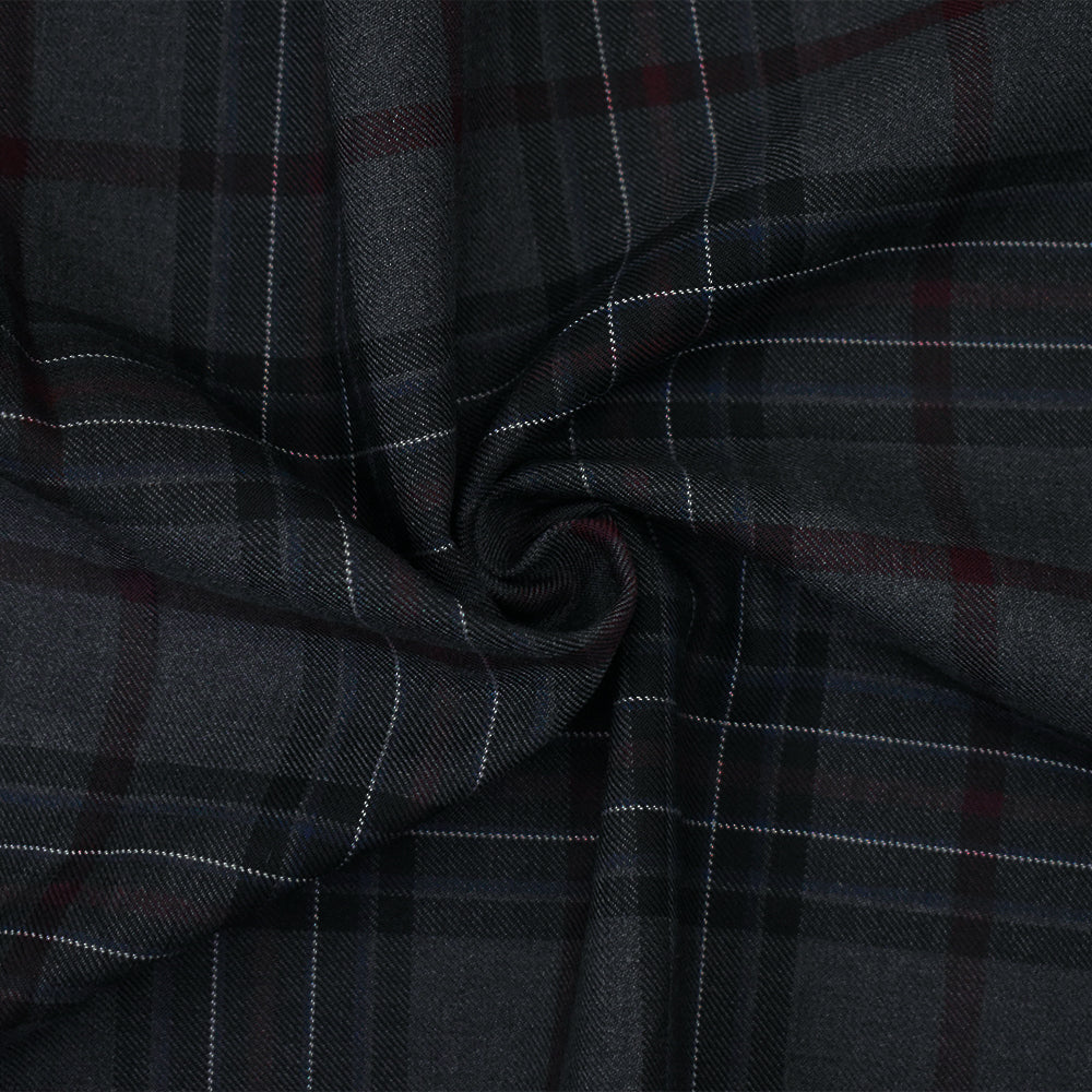 Gray-Burgundy-Multi Wool Polyester Blend Plaid Twill Woven Suiting Fabric