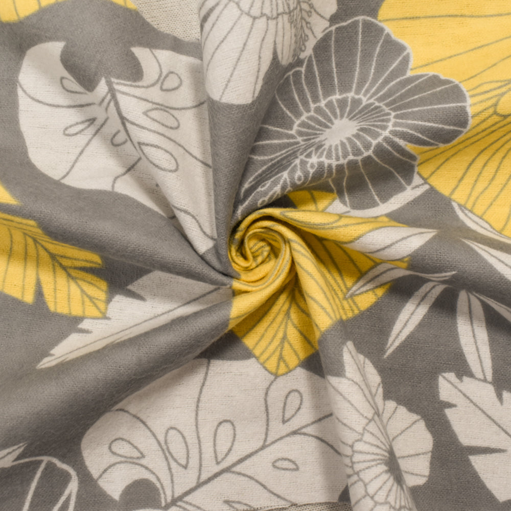 Gray-White-Yellow Cotton Floral Printed Flannel Woven Fabric