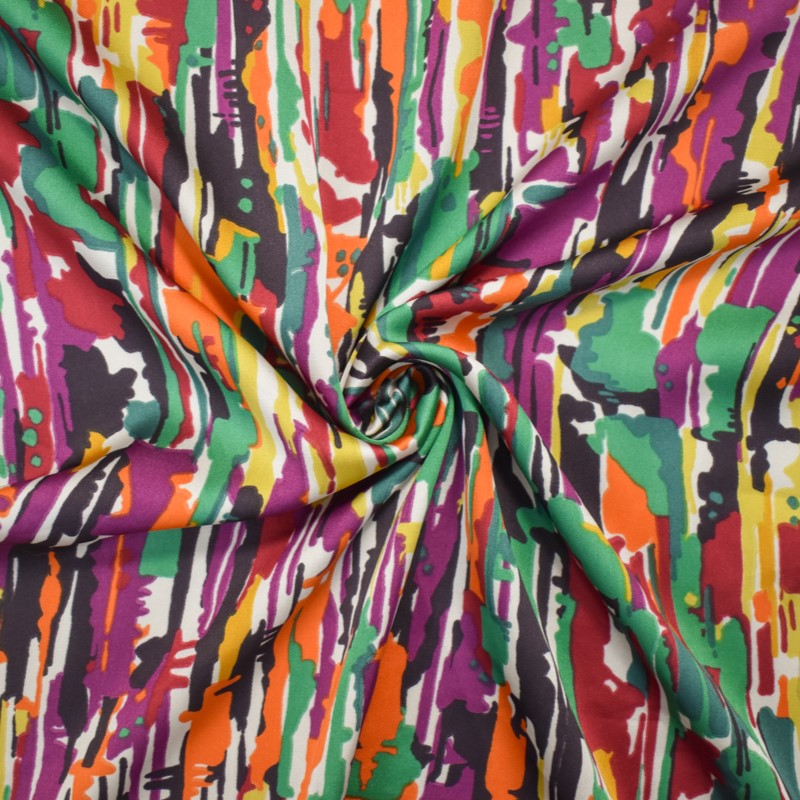Green-Orange-Multi Poly Abstract Printed Charmeuse Satin Woven Fabric