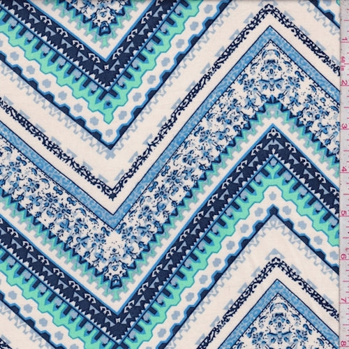 Ivory/Navy/Sky Deco Chevron Rayon Challis Fabric