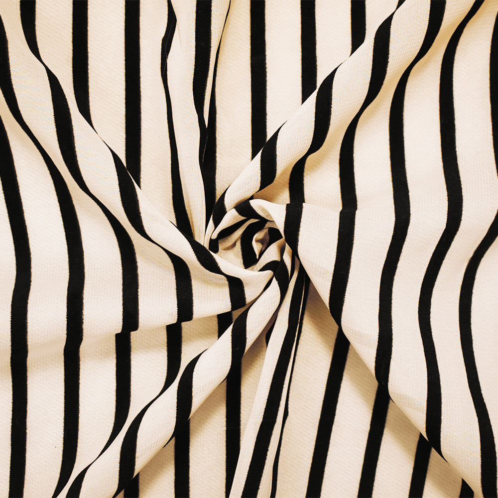 Light Beige-Black Stripe Velvet Flocked Printed Chiffon Woven Fabric
