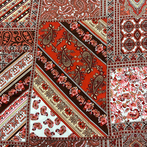2 3/4 YD PC-Buff/Berry/Orange Flamestitch Rayon Challis Fabric