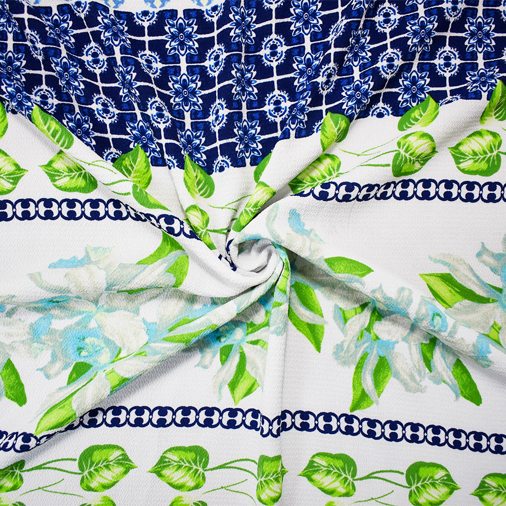 2 7/8 YD PC-Blue-Green-Multi Poly Leaf Multi Pattern Printed Pebble Crepe Woven Fabric