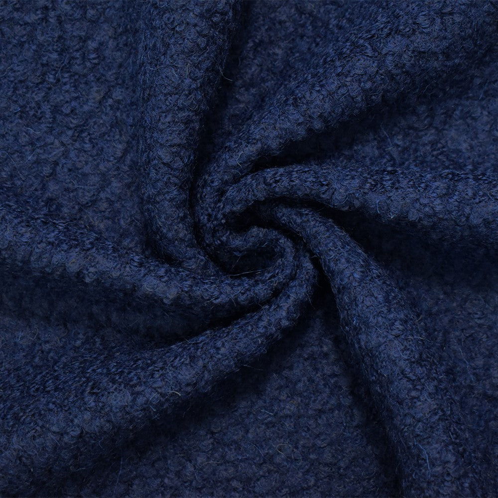 Navy Blue Wool-Poly Boucle Knit Fabric