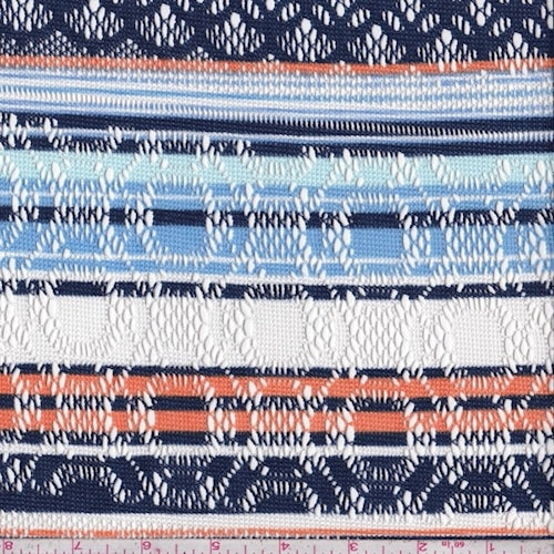 Navy/Orange/Mint Stripe Pointelle Knit Fabric