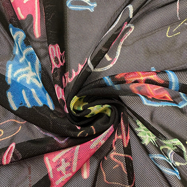 Neon Pink Multi Snakeskin Print Stretch Mesh Fabric