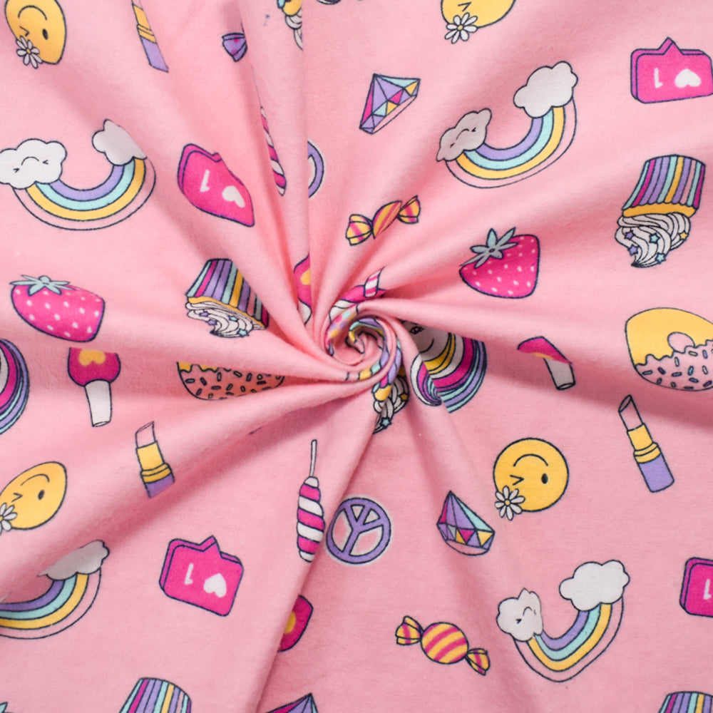 Pink-Purple-Multi Cotton Unicorn Candy Printed Flannel Woven Fabric