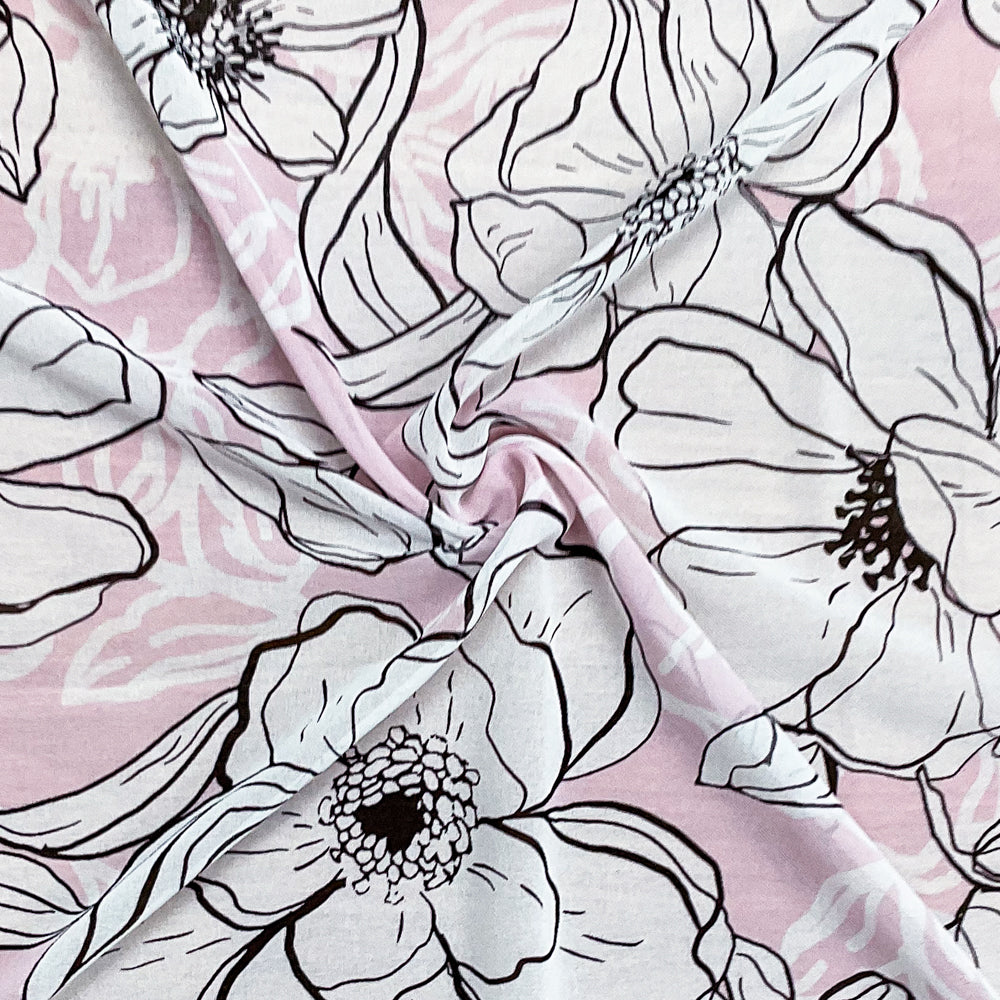 Pink-White-Black Poly Floral Printed Chiffon Woven Fabric