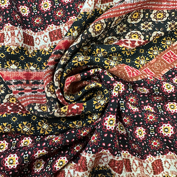 Red Multi Color Aztec Print Rayon Challis Fabric
