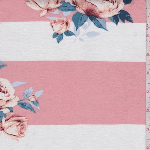 Salmon/White Floral Stripe Rayon Jersey Knit Fabric