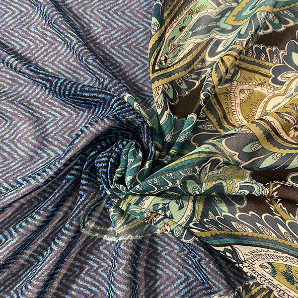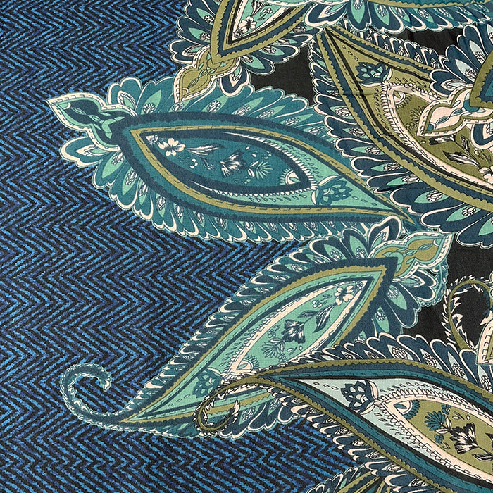 Turquoise and Black Herringbone Paisley Print Chiffon Fabric