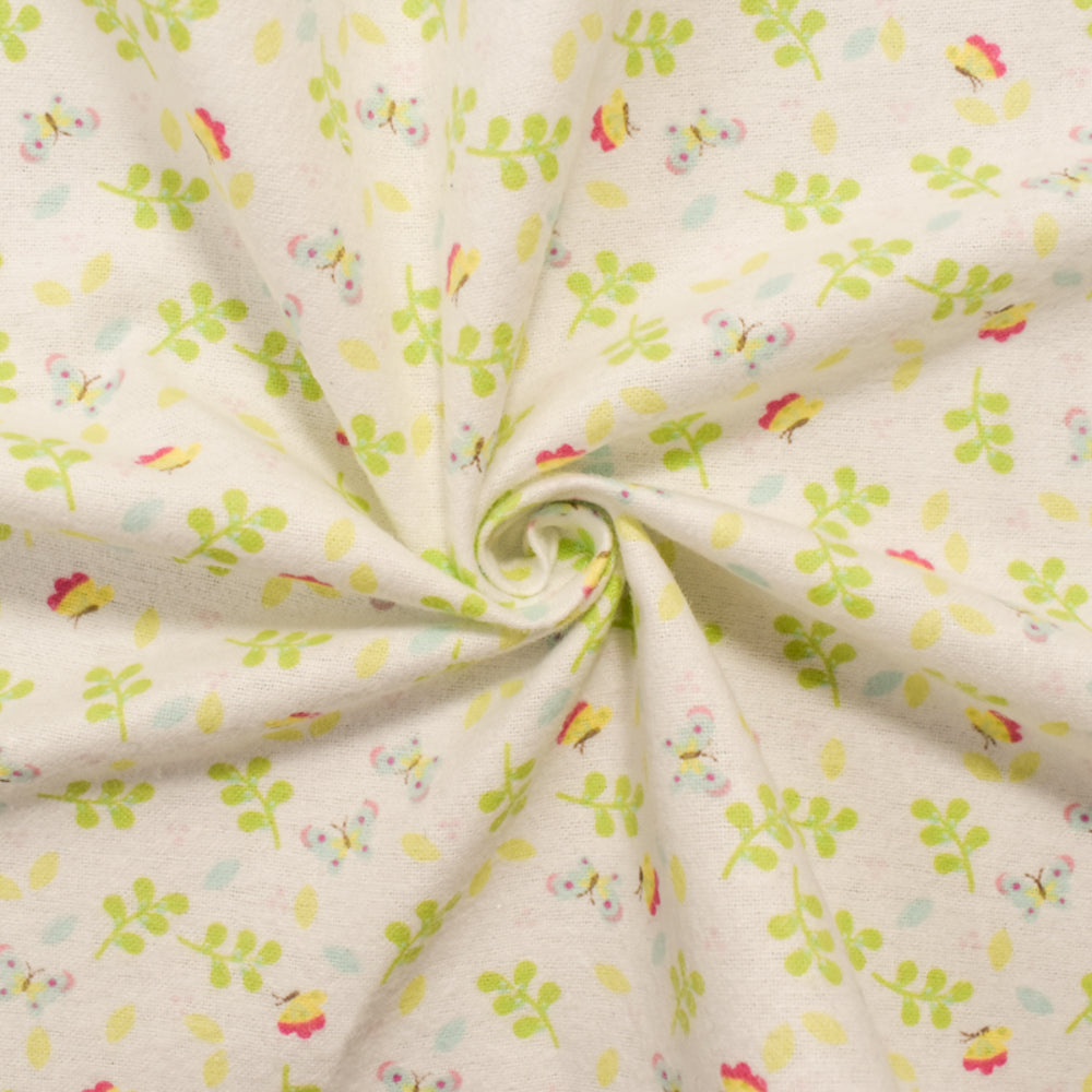 White-Pink-Multi Cotton Butterfly Leaves Printed Flannel Woven Fabric
