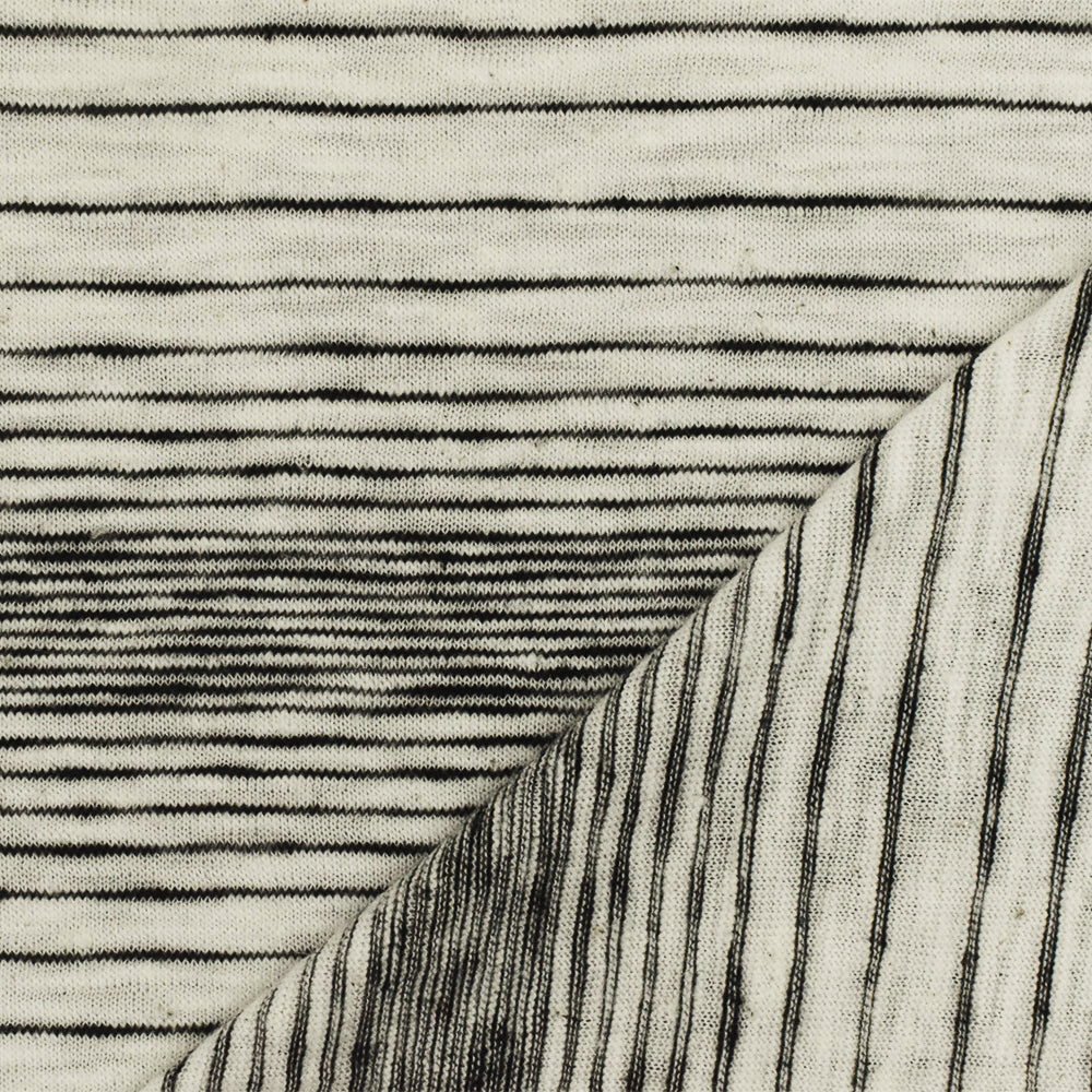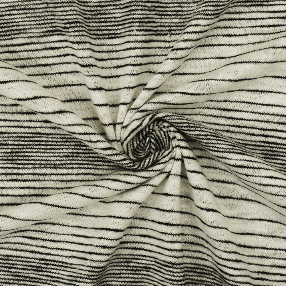 Antique Black-Ivory Stripe Stretch Cotton Jersey Knit Fabric