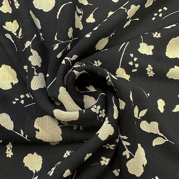 Black and Ivory Floral Silouhette Print High Crepe Fabric