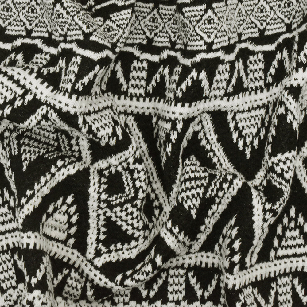 Black-White Aztec Jacquard Stretch Double Knit Fabric