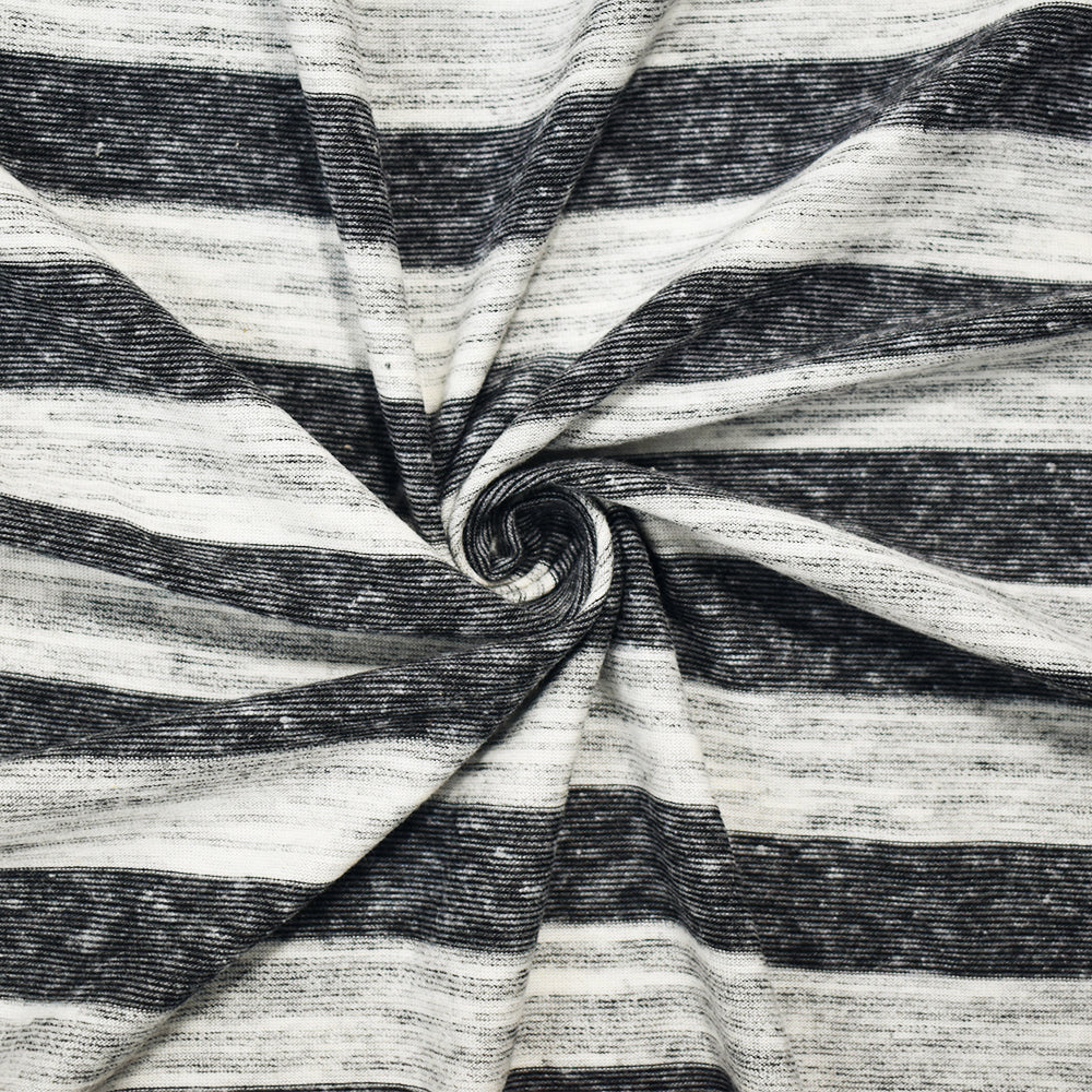 Black-White Poly Blend Stretch Stripe Slub Jersey Knit Fabric