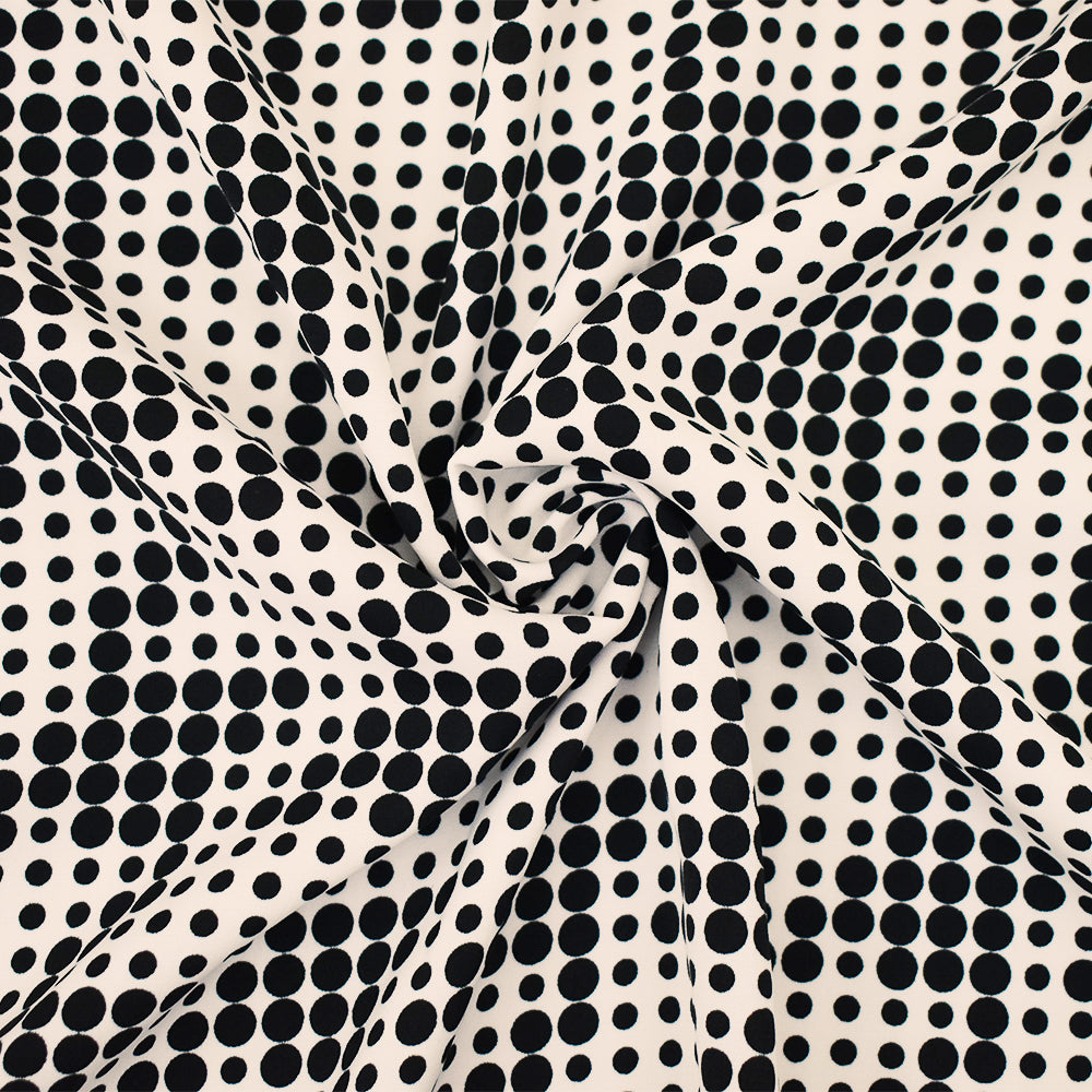Black-White Poly Stretch Spandex Dot Print Pleated Interlock Knit Fabric