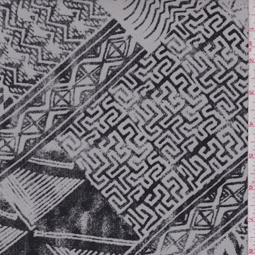 Black/White Tribal Printed Double Brushed Stretch ITY Knit Fabric