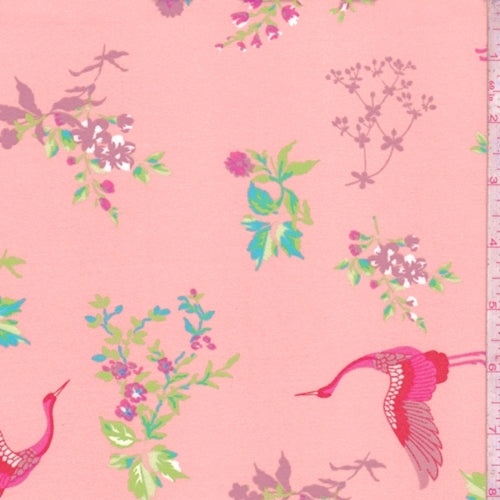 Blush Pink Crane/Floral Double Brushed Jersey Knit Fabric