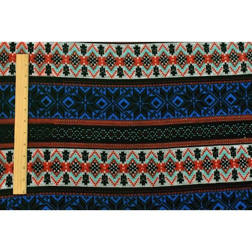 Blue/Multi Winter Stripe Stretch Brushed Hacci Knit Fabric