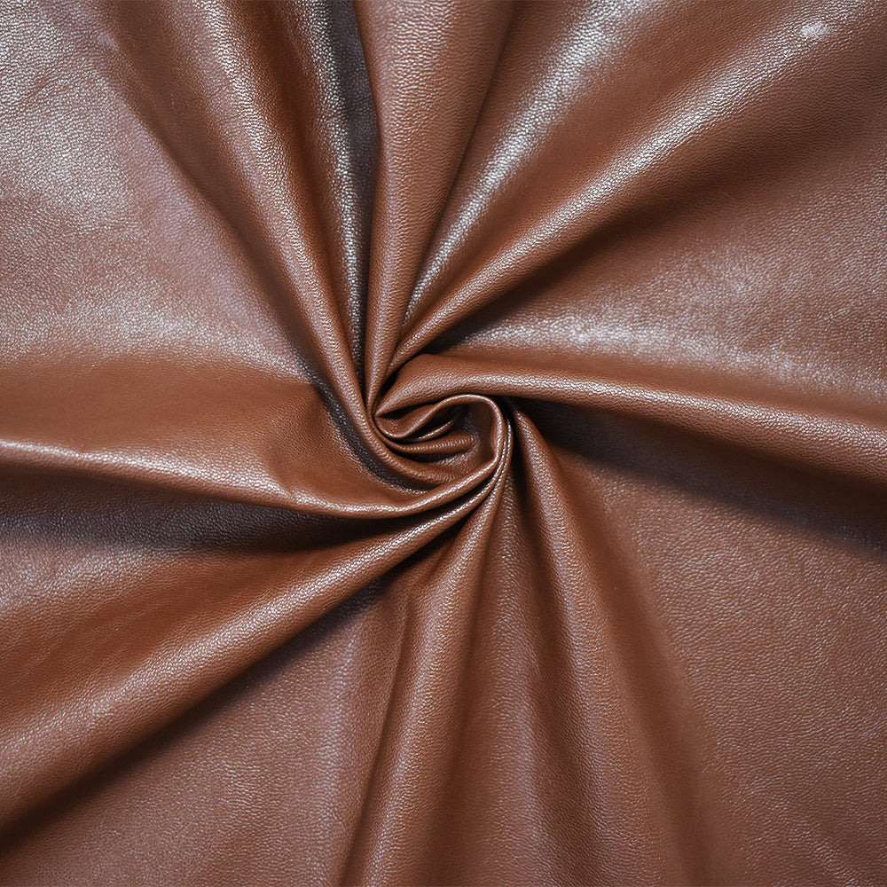 Brown Cotton Faux Leather Over Print Woven Fabric