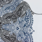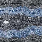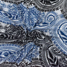 Navy Blue-White-Black Lace Border Printed Stretch Poly Jersey Knit Fabric