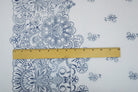 White-Dark Blue Nylon Floral Border Printed Mesh Tulle Fabric