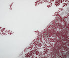 White-Pink Nylon Floral Border Scallop Printed Mesh Tulle Fabric