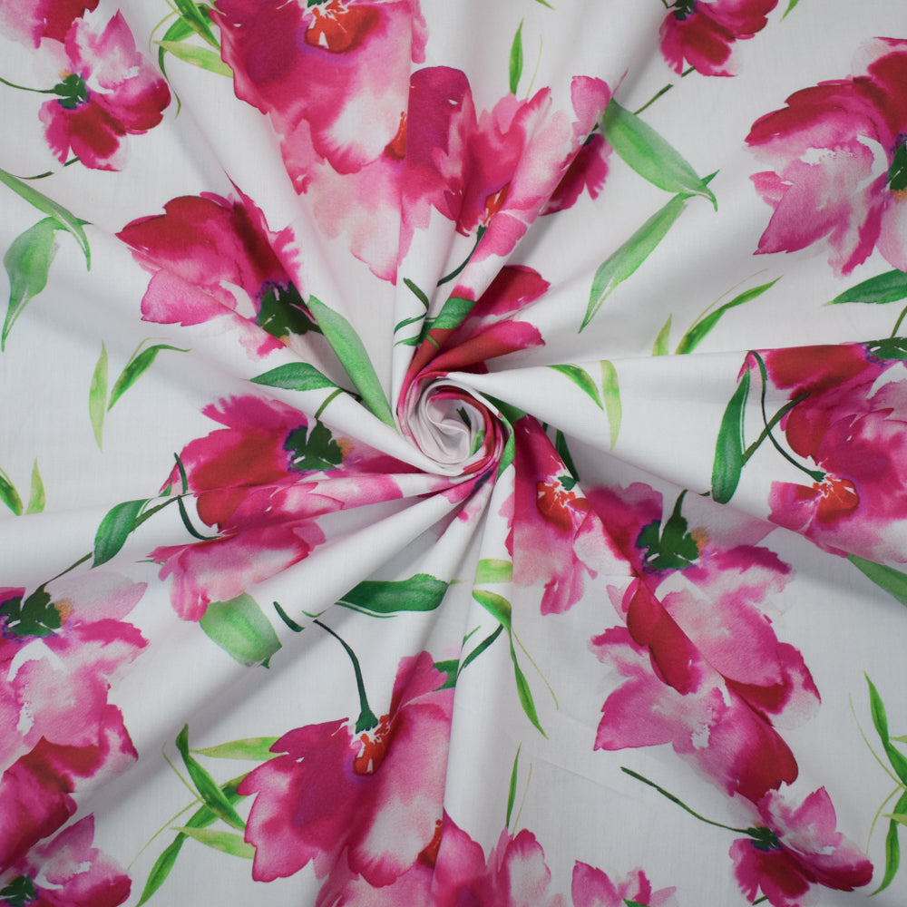 Pink-Green-Multi Cotton Floral Printed Broadcloth Woven Fabric