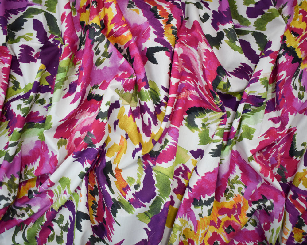 Fuchsia-Purple-Multi Cotton Abstract Floral Printed Broadcloth Woven Fabric