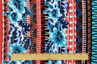 Aqua-Red-Multi Floral Tribal Stripe Printed Challis Fabric
