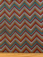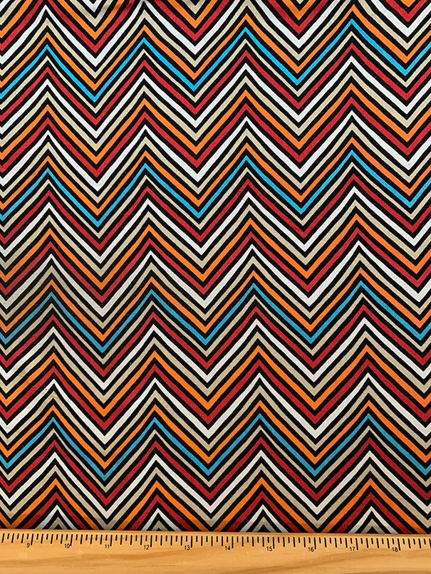 -Beige, White, Black, Turquoise, Red, & Orange Multi Chevron Print Rayon Challis Fabric
