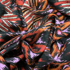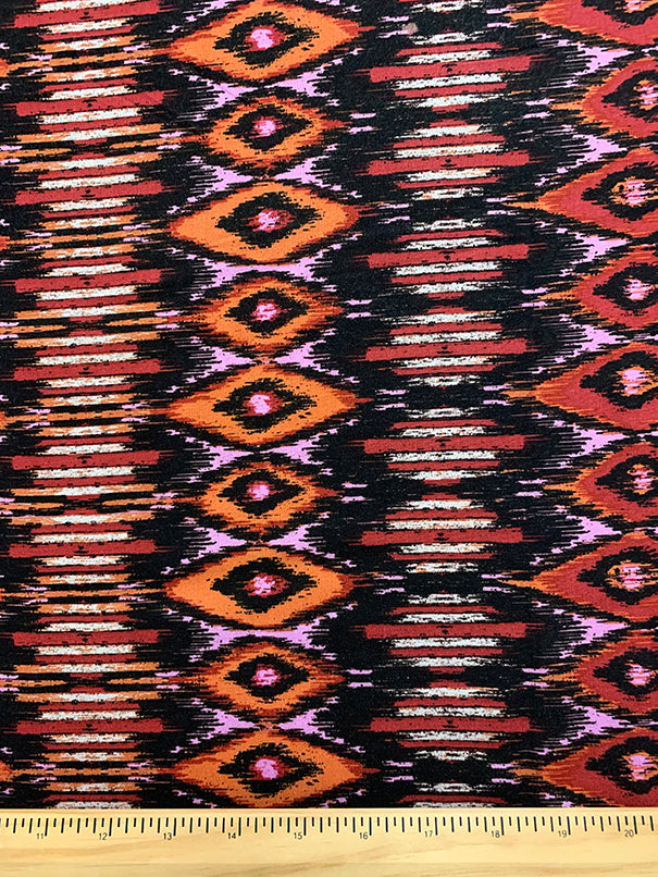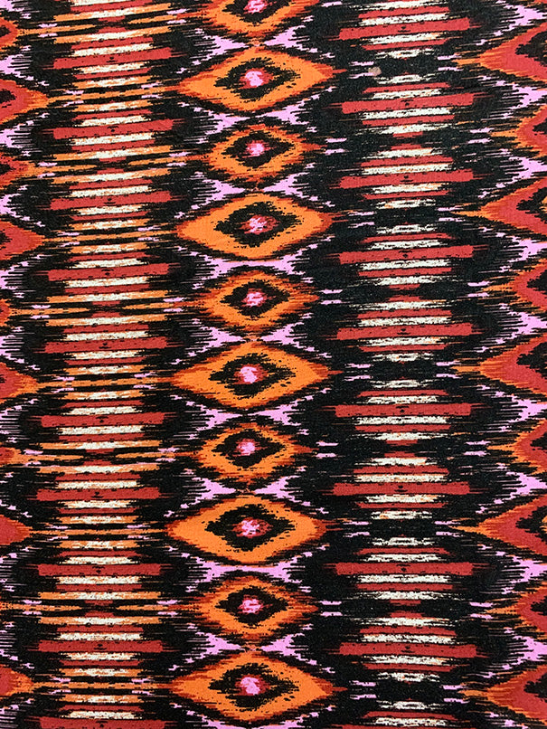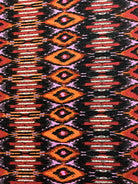 -Red, Black, Lavender, White, & Orange Multi Horizontal Stripe Print Rayon Challis Fabric