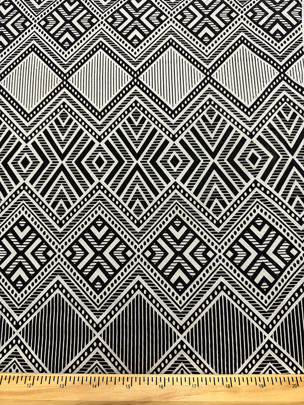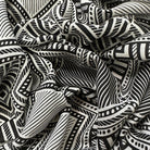 Black and White Geometric Stripe Print Rayon Challis Fabric