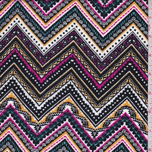 Black/Fuchsia/Gold Zig Zag Rayon Challis Fabric