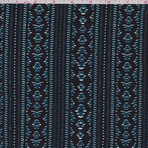Black/Mallard Blue Aztec Stripe Challis Fabric