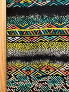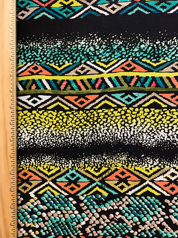 Black Multi Splatter Stripe Print Rayon Challis Fabric