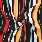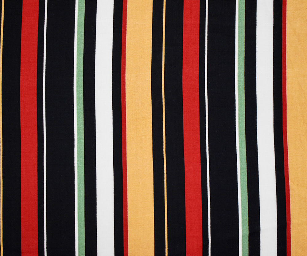 Black-Red-Multi Rayon Stripe Printed Challis Woven Fabric