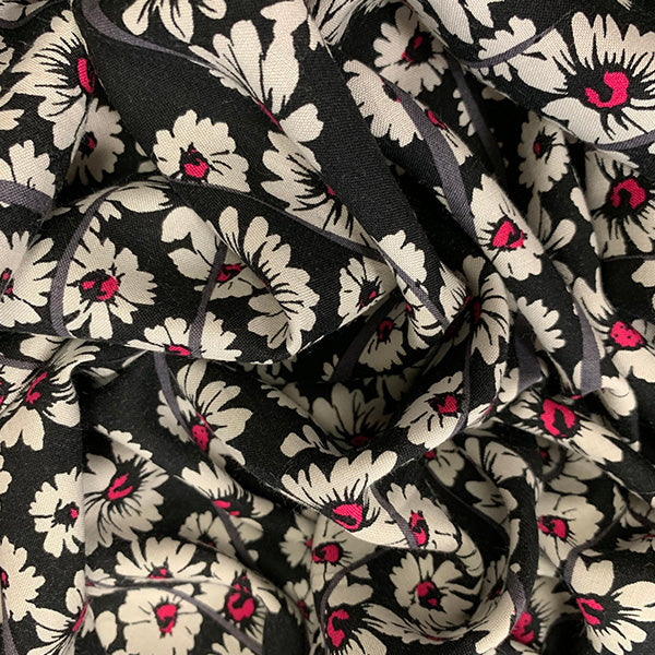 Blue and Gray Daisy Print Rayon Challis Fabric