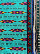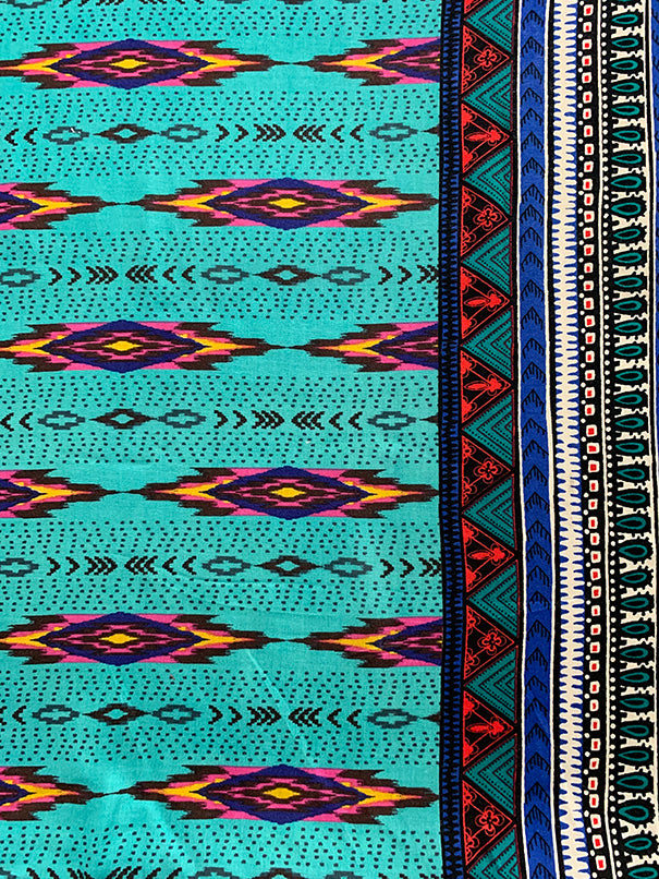 -Blue, Pink, Teal, Gold, Red, Black, & White Multi Stripe Print Rayon Challis Fabric