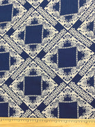 -Blue and White Lace Look Print Rayon Challis Fabric