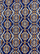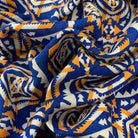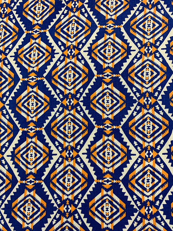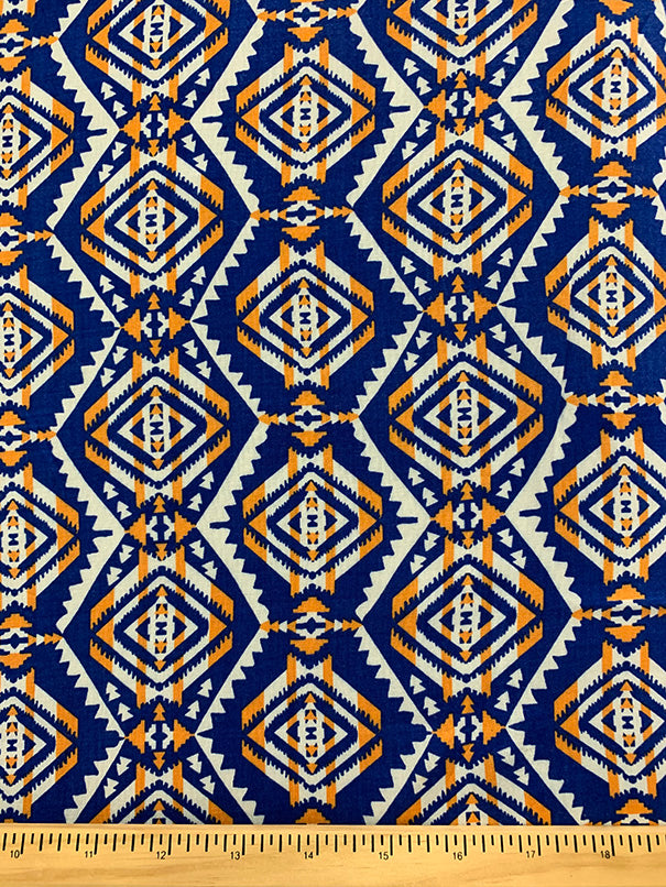 -White, Orange, & Blue Aztec Stripe Print Rayon Challis Fabric