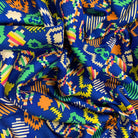 Blue Multi Color Aztex Print Rayon Challis Fabric