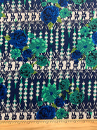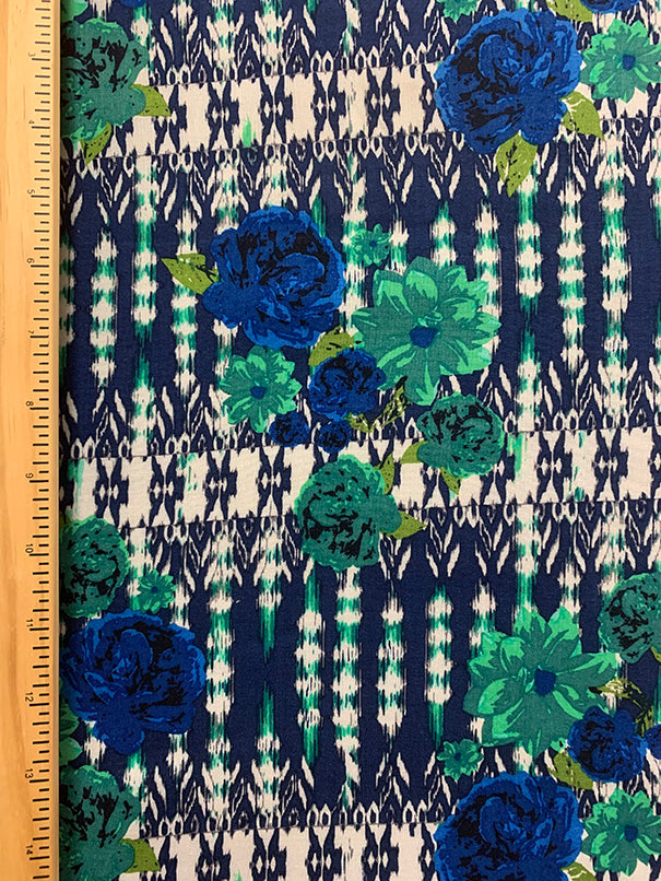 Blue Rose Novelty Stripe Print Rayon Challis Fabric