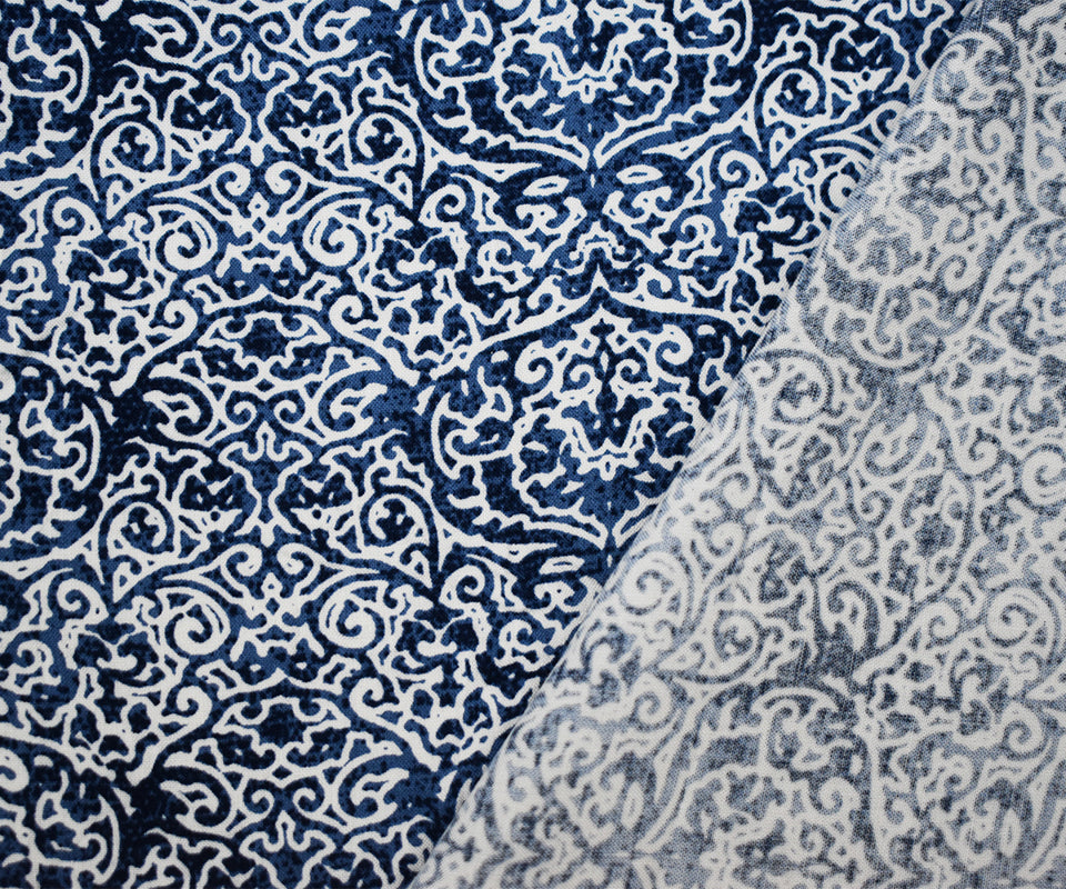 Blue-White Famous Designer Fancy Ogee Print Challis Woven Fabric